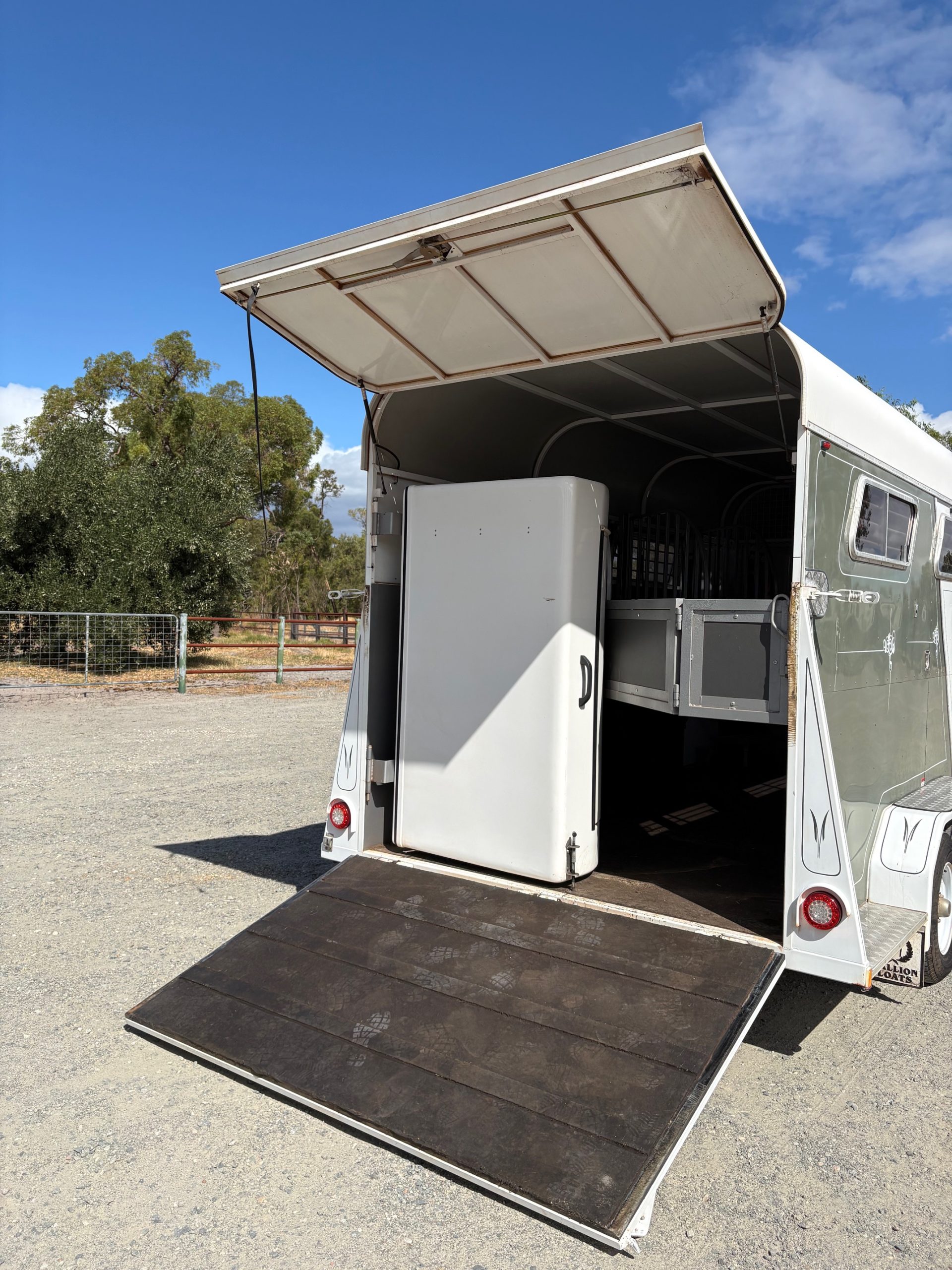 Rear Fibreglass Swing Out Tack Box inc 3 Saddle Racks